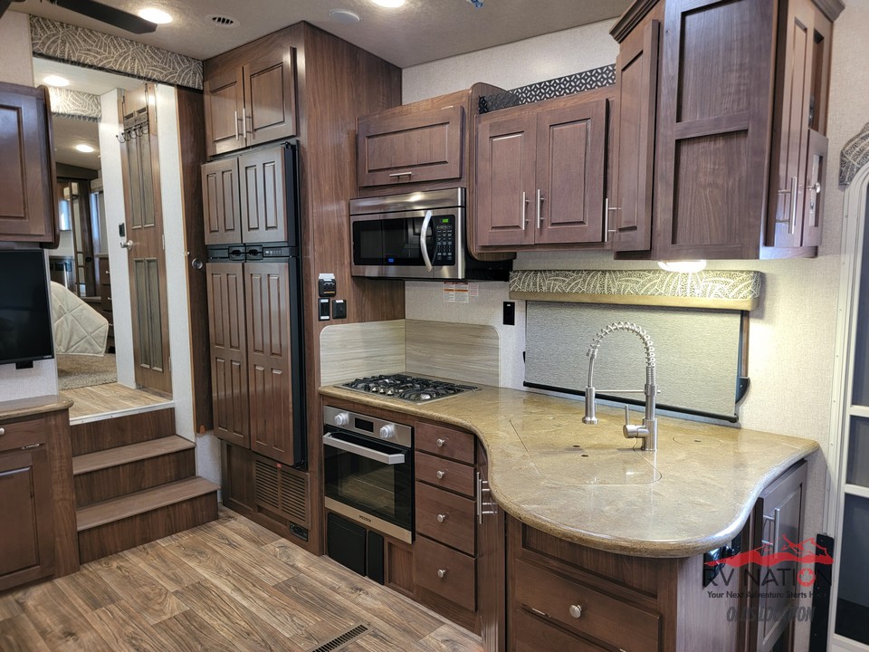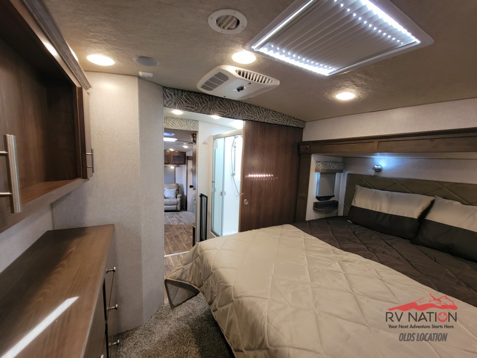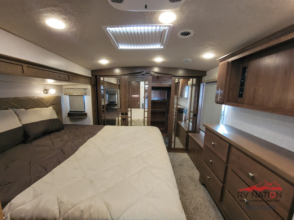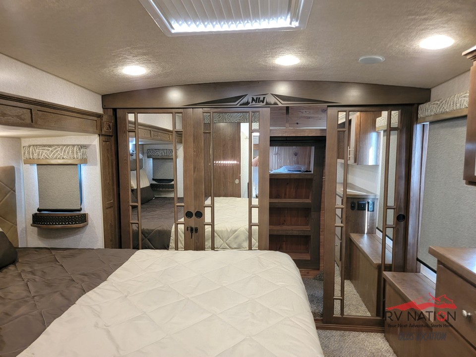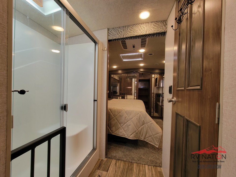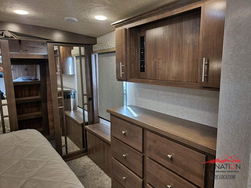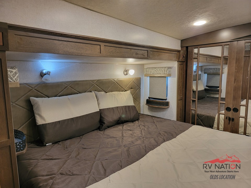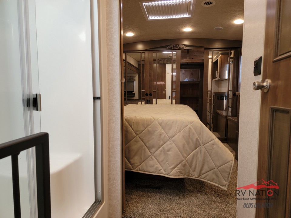 This unit comes equipped with premium upgrades, including a propane generator with under 6 hours of use, dual A/C units, and heated tank pads for reliable off-grid performance and true four-season capability. Built with Northwood’s heavy-duty construction—thick wall aluminum framing, high-density insulation, and an enclosed, heated underbelly—the 29-5T is ready for both hot summers and cold-weather camping.