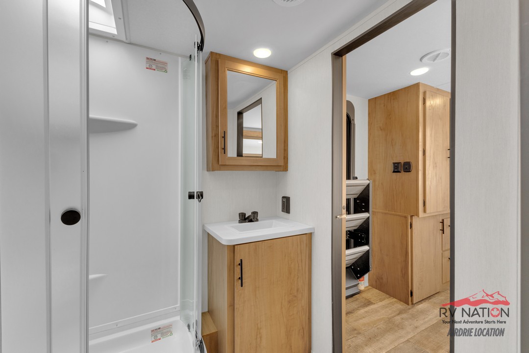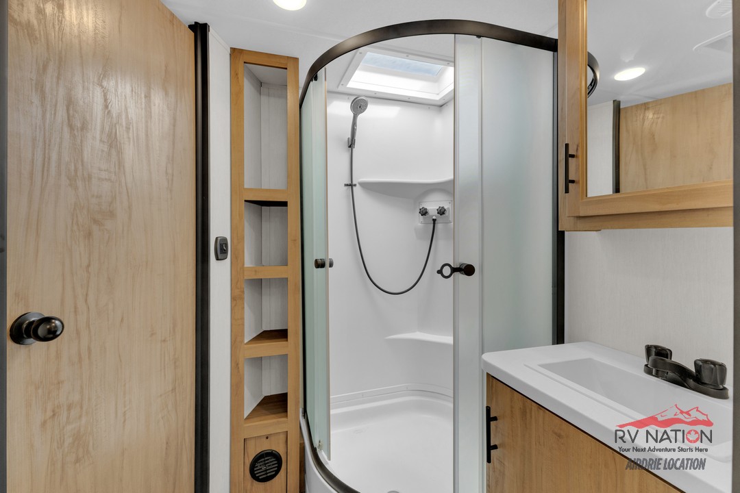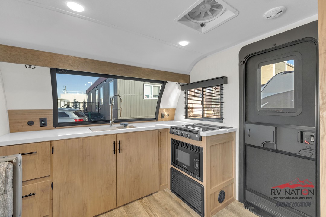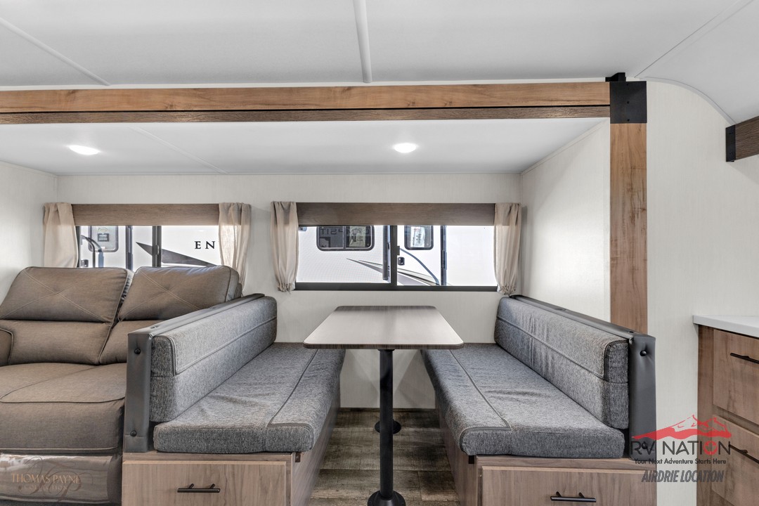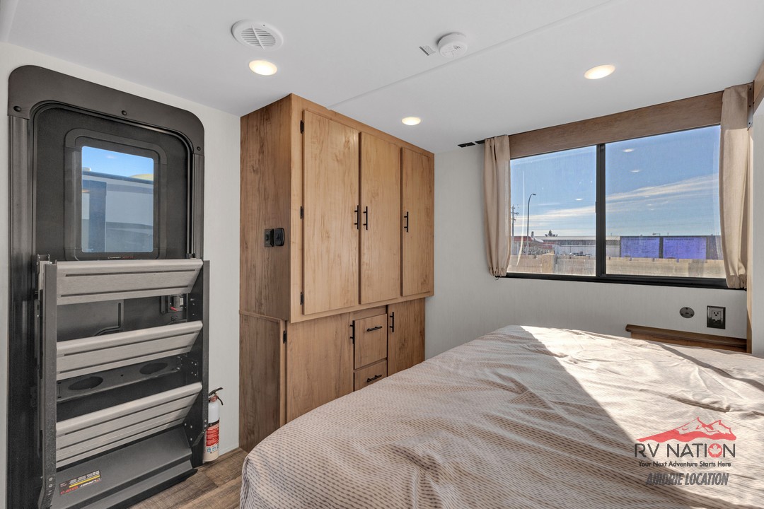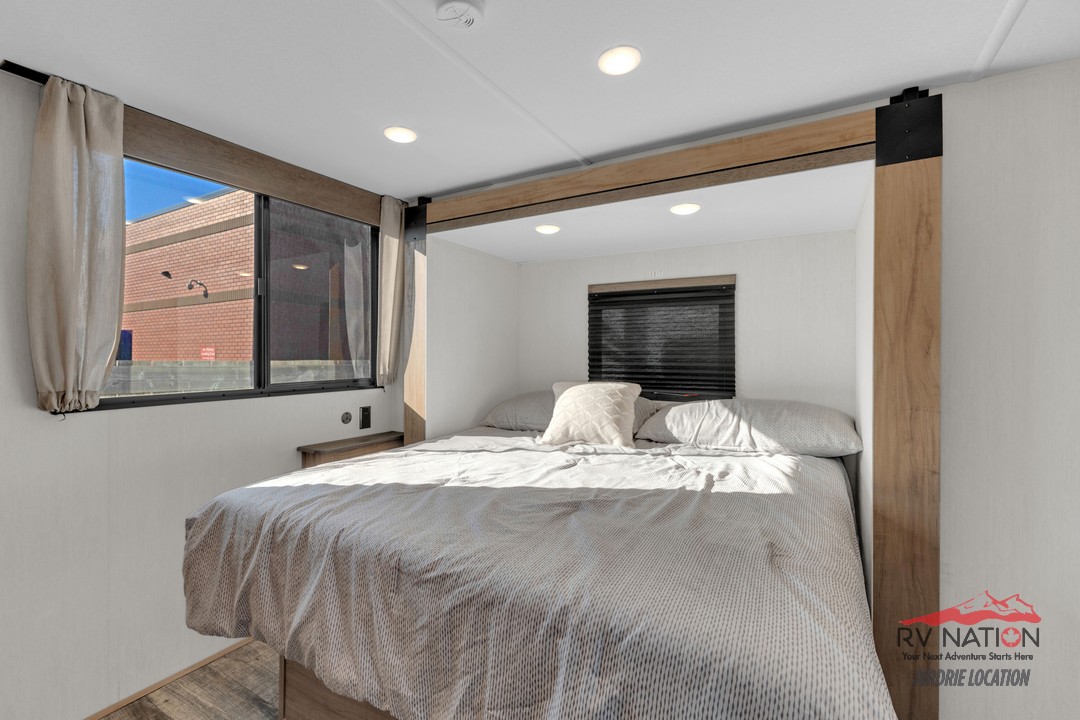 The 2025 Campsite Ultra 26BW delivers upscale comfort in a well‑balanced 30-foot package. With a front-facing kitchen bathed in natural light from a massive automotive-style windshield, it’s designed to thrill the camp chef. A hidden pantry tucked behind the entertainment center adds clever storage, while dual-entry doors provide flexible access throughout the unit. A pair of slides—one under the king bed—expands the living space and bedroom dramatically, making daily life feel roomy and refined.