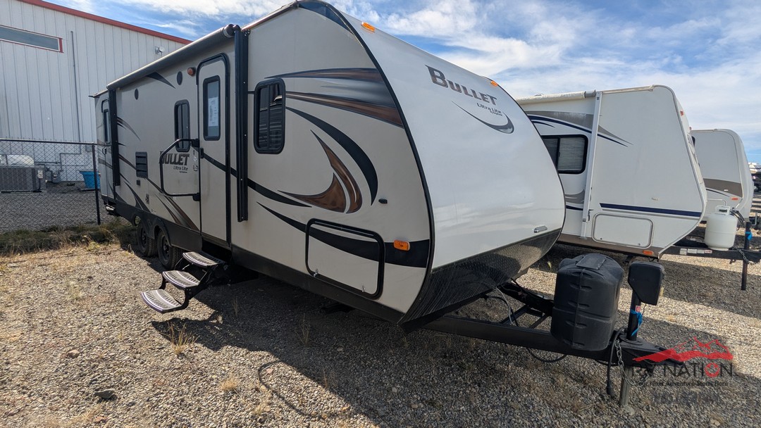 Start your next adventure with the 2015 Keystone Bullet 272BHS — a lightweight, family-friendly bunkhouse travel trailer built for comfort and convenience.