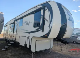 The 2017 Bay Hill 320RS is a premium fifth wheel built for those who want ample space, higher-end finishes, and excellent year-round livability. Boasting a triple-slide layout, it features a rear living area with theater seats/recliners and a large sofa, plus a free-standing dinette. The front bedroom offers a queen bed with slide-out storage and a roomy layout.