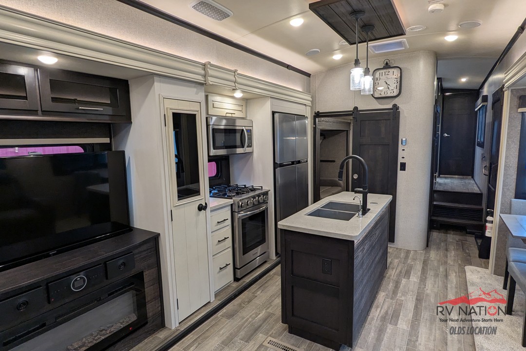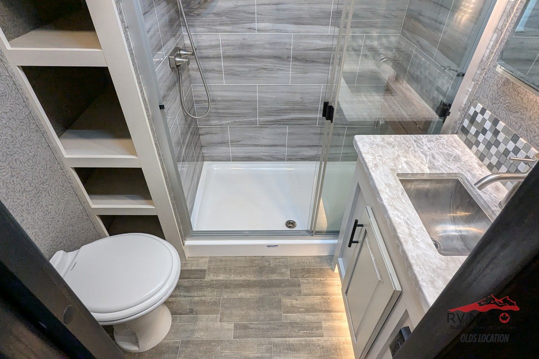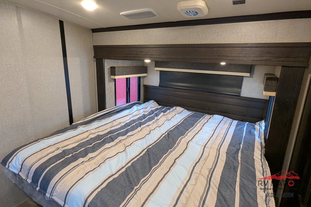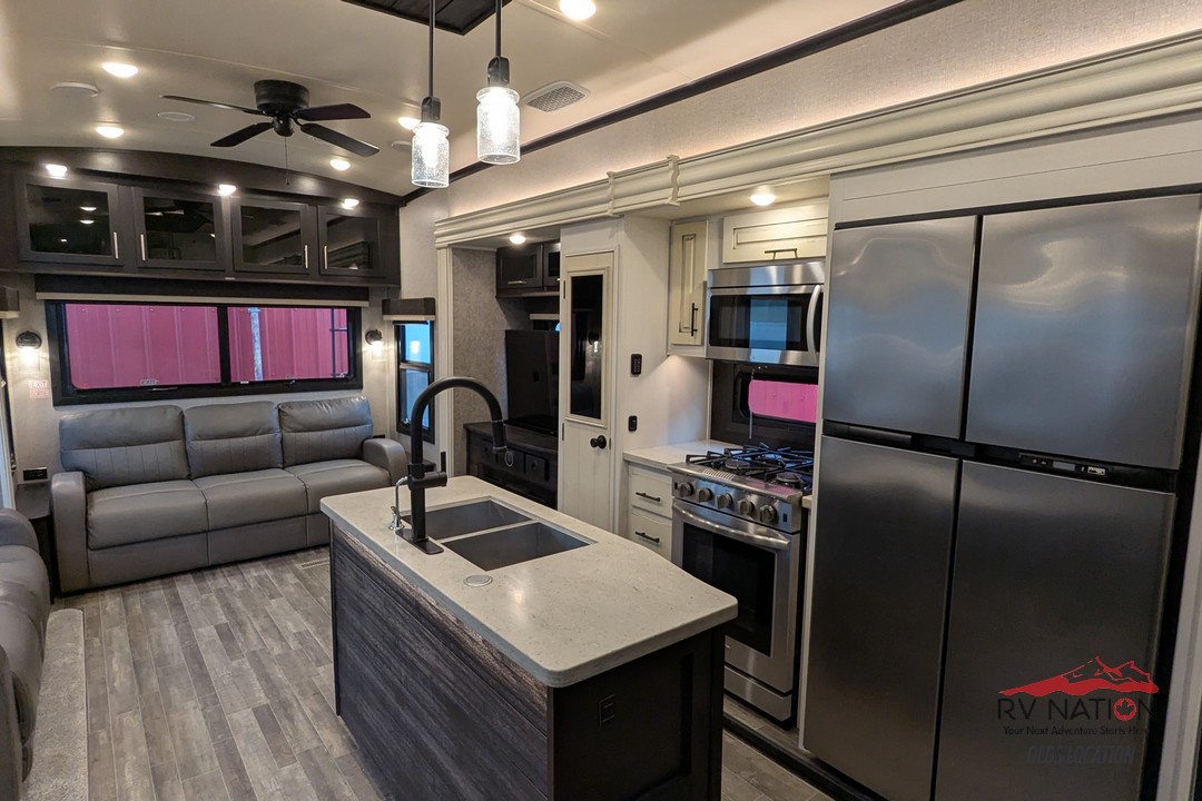 Built for year-round comfort, it includes Jayco’s Climate Shield insulation, MORryde suspension, dual A/Cs, and an outdoor kitchen under dual power awnings.