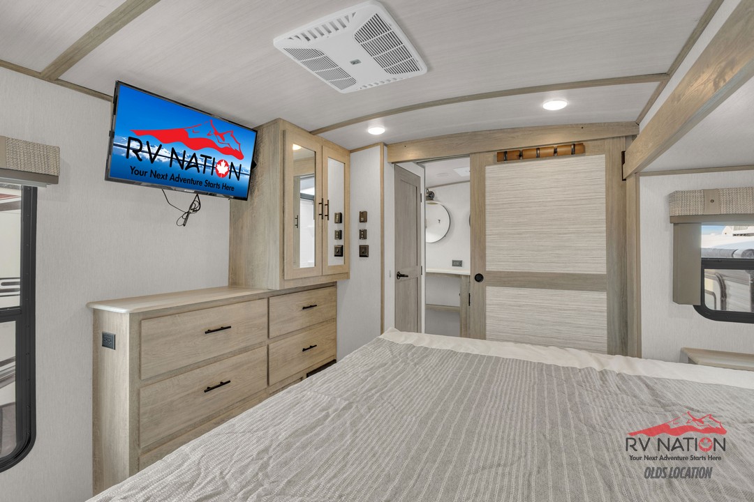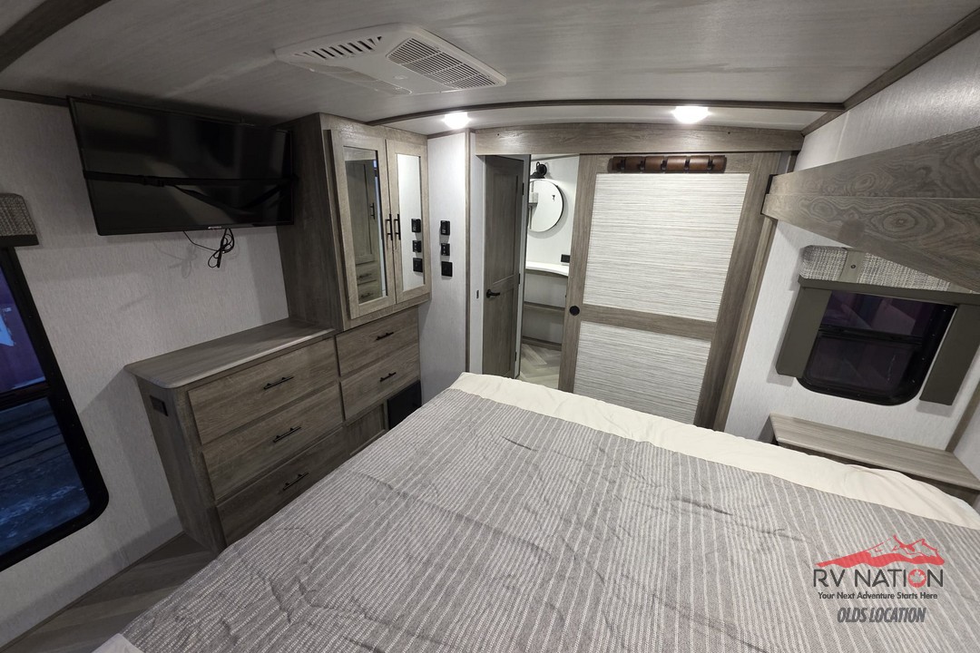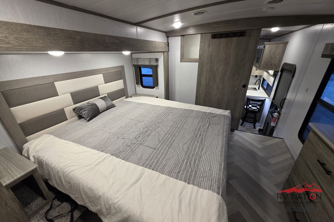 In the private master suite, you’ll find a comfortable king bed, wardrobe space, and convenient access to the full bathroom. Built with durability and long-trip comfort in mind, the 36FL includes generous holding tank capacities, reliable heating and cooling systems, and thoughtful storage inside and out. Whether you’re planning extended travel or weekend getaways, this Salem Hemisphere Elite combines comfort, convenience, and style.