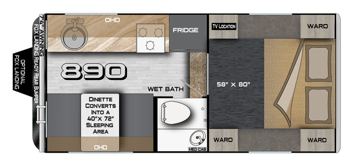 This unit is equipped with some of the most sought-after options, including the Fox Landing step system, Onan LP generator, swing-out brackets for dually compatibility, and side storage boxes for added exterior gear capacity. With electric jacks, solid construction, and smart upgrades throughout, the Wolf Creek 890 delivers a durable, well-equipped platform for off-grid camping, hunting trips, and year-round adventure.