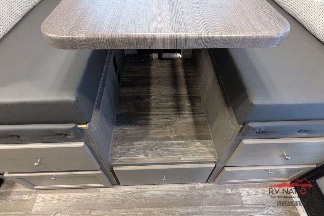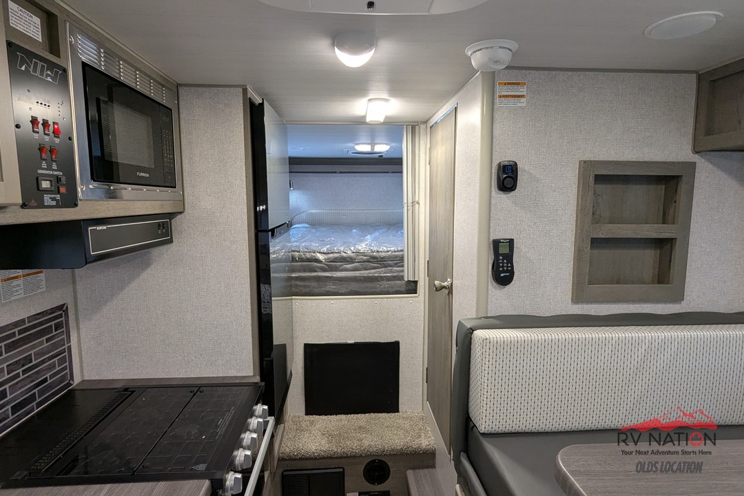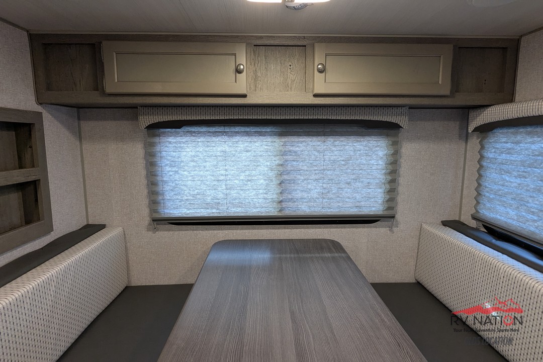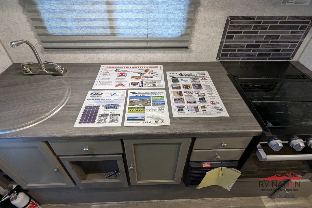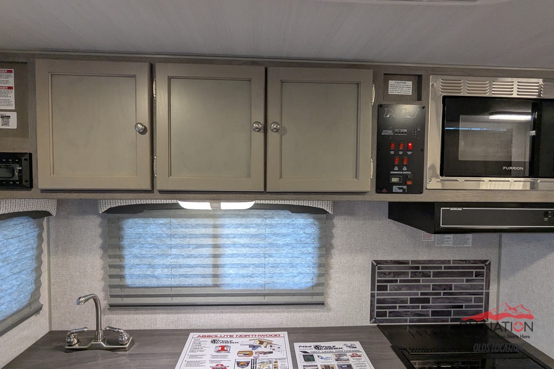 This 2026 Wolf Creek 890 is a true all-season hard-side camper built with Northwood’s signature welded aluminum frame, high-density insulation, and heated holding tanks. It features a front queen bed, a spacious booth dinette that converts for extra sleeping space, and a full wet bath. The kitchen includes a 3-burner cooktop, microwave, 8 cu ft 12V refrigerator, and an upgraded oven for full cooking capability. A Coleman Mach 10 A/C keeps the camper cool and comfortable in the summer.