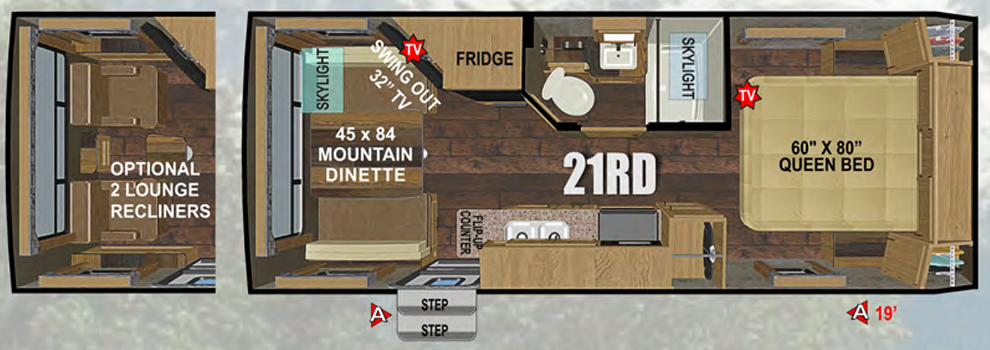 The 2020 Creek Side 21RD is a compact yet highly capable travel trailer built by Outdoors RV for adventure in a wide range of climates. Its rear dinette layout provides large windows and a comfortable space to relax, dine, or enjoy the view after a day outdoors. The kitchen is well equipped with a three-burner cooktop, oven, refrigerator, and ample storage, making meal preparation simple whether you’re at the campground or off the beaten path.